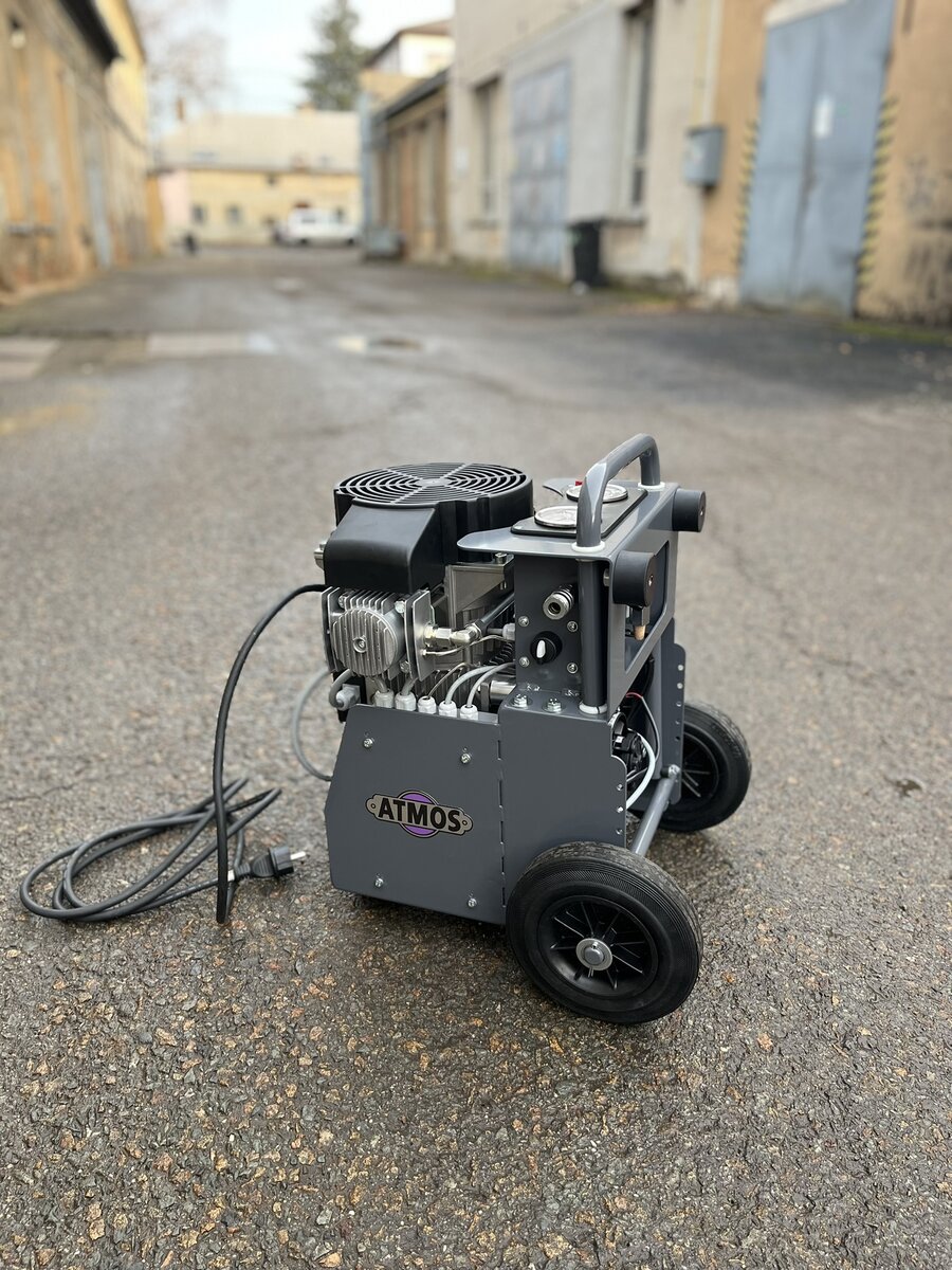 Tento malý ale výkonný bezmazný pístový kompresor má vestavěný dochlazovač, čímž zaručuje stálý přísun suchého vzduchu především pro zafukování optických vláken. Díky nízké hladině hluku ho lze bez obav využít i uvnitř budov.