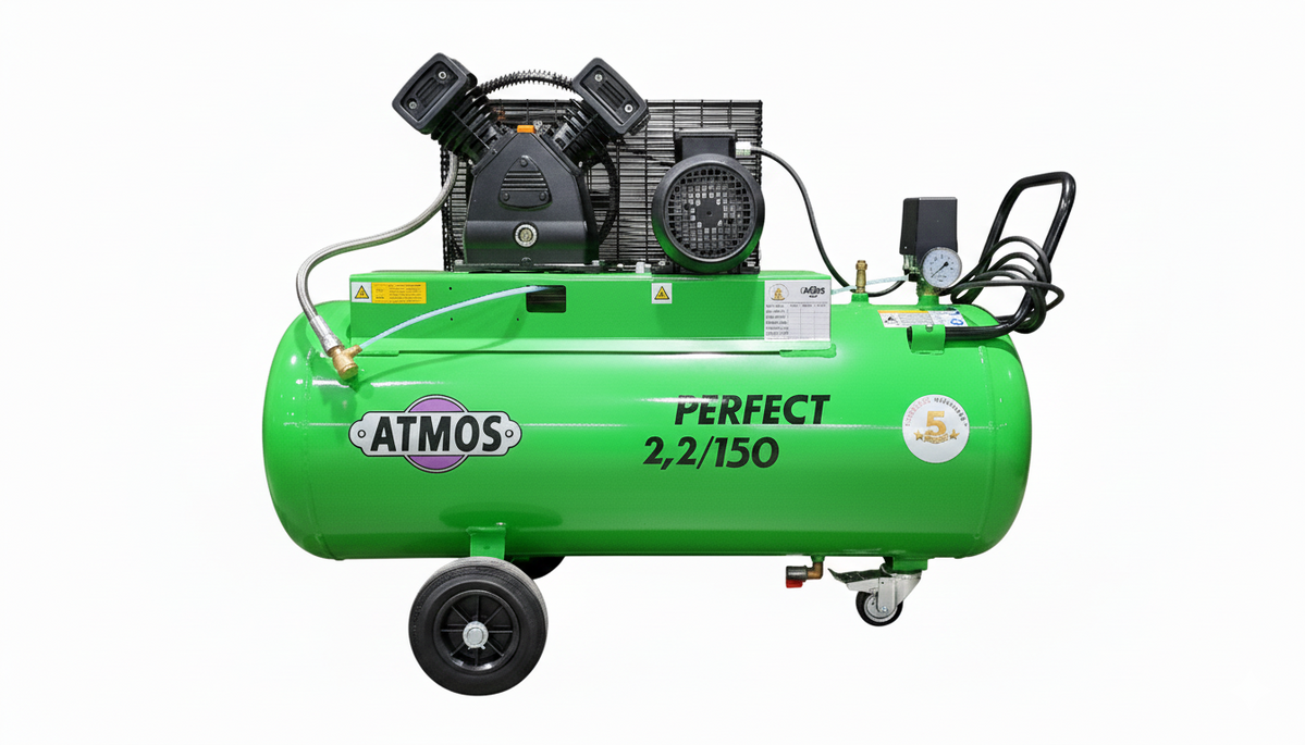 Průmyslový, pomaloběžný, litinový, pístový kompresor pro profesionální výrobu stlačeného vzduchu vhodný pro pravidelný každodenní provoz přerušovaného charakteru s určením do řemeslnických provozoven (autoservisy, pneuservisy, lakovny, montážní dílny, apod.) Perfect 2,2 dodáváme v provedení o výkonu 420 l/min. a může být napájen variantně jak jednofázovým elektrickým rozvodem (ozn. „EX“) používaném nejčastěji v domácnostech, tak trojfázovým rozvodem ideálním (respektive přirozeným) zejména pro elektromotory*. Perfect 2,2 je dodáván na horizontálním vzdušníku objemu 90 nebo 150 litrů.
